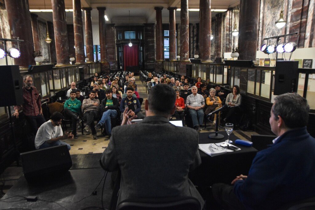 Mangione agradeció a los estudiantes y a las autoridades del ECU “por la posibilidad de compartir este diálogo colectivo, tan urgente y necesario, en un espacio como el de la Universidad que es al fin y al cabo donde apunta a llegar este trabajo sobre el rol de los intelectuales en la liberación nacional”.