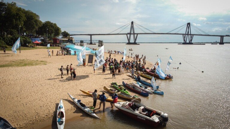 Avanza la travesía por el Paraná: remada, acto multitudinario en Corrientes y fuerte denuncia contra la profundización del dragado