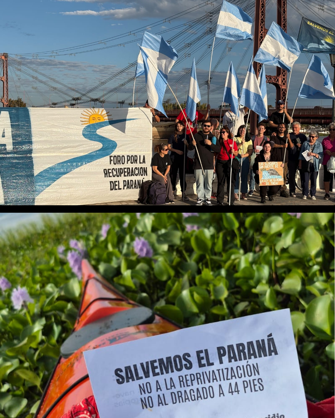Desde la organización afirman: “Venimos en una lucha ininterrumpida desde el año 2021, que hizo posible detener hasta el presente la reprivatización del Paraná. No vamos a parar hasta la total recuperación de nuestro río en manos argentinas. Entregar el Paraná es como entregar Malvinas”.