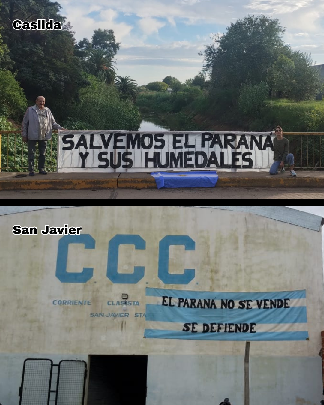 Una nueva jornada en defensa del río Paraná y sus humedales se concretó este sábado de modo simultáneo en numerosas localidades de las provincias ribereñas. En la provincia de Chaco, fue en Las Palmas, Isla del Cerrito, Colonia Benítez, Barranqueras y Resistencia; en Corrientes, en Corrientes Capital, Empedrado, Bella Vista, Goya y Esquina; en Entre Ríos, en La Paz y Paraná; en Santa Fe, en Santa Fe Capital, Reconquista, San Lorenzo y Rosario; en la provincia de Bs. As., en Ramallo; entre otras.